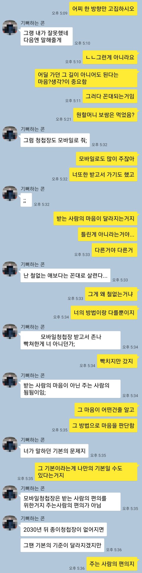 이 카톡내용을 읽고 여러분들의 생각이 궁금하여 이렇게 글을 올립니다.
