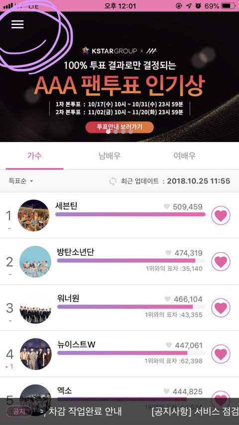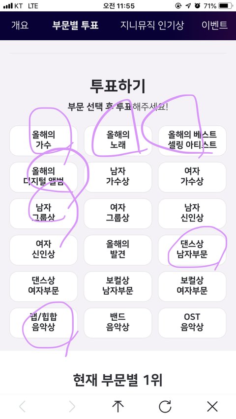 안기상은 부분별 투표 옆에 카테고리에 있으니 빼먹지 멀고 꼭 해줘