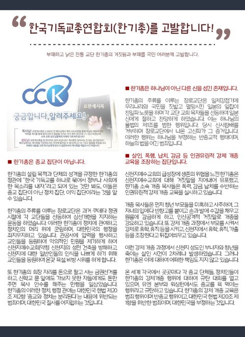 부패하고 낡은 전통 교단 한기총의 거짓됨과 부패를 국민 여러분께 고발합니다.