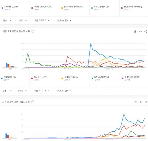 여자가수 : 1위 소녀시대 Gee, 2위 카라 미스터, 3위 소녀시대 지니, 4위 카라 점핑, 5위 소녀시대 훗