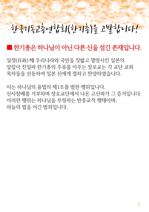 부패하고 낡은 전통 교단 한기총의 거짓됨과 부패를 국민 여러분께 고발합니다.