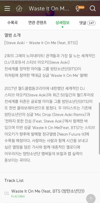 방탄소년단이랑 스티브아오키님이 콜라보 한 곡 'waste it on me' 방금 멜롱에 공개됬어 많이 들어줘!(램프요정에두 공개됬데) 노래진짜진짜좋아 ㅜㅜ