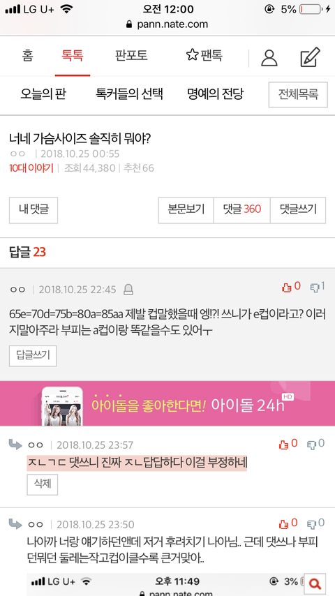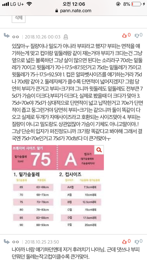 그 톡선글에서 65e=85aa 이지랄 한다 진짜 조카 답답하네 85aa는 골자체가 안생기는데 뭔 ㅈㄹ이야 65e는 걍 글래머인데 글래머 아니라고 빼엑 자기가 70d인데 a같다고 ㅈㄹ함 진짜 ㅆㅂ 귀막고 눈막노 그리고 70d가 75d보다 가슴커보이는데 부피운운하면서 아니라고 ㅈㄹ함 진짜 저 지1랄하는거보면 가슴사이즈 잘못알고있는거임 저새끼 빼박70d아니야 진짜 렝알 댓글보고오셈 토악질나옴