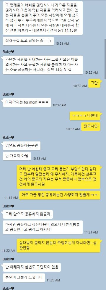 남자친구가 성경구절은 물론 철학적인 말이나 명언같은것도 좋아하고, 카톡 프로필도 그런걸로 매번 바꿔가면서 하고 명언및 강의,설교같은거 페북쉐어도 자주하는 스타일입니다.