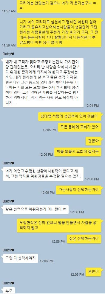 남자친구가 교회는 따로 가지 않지만, 힘든몇년을 하나님에 의지하고 버텼기 때문에 믿음이 무척 강합니다
