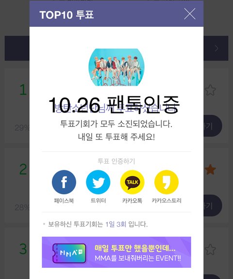 클릭하고 방탄소년단에게 소중한 투표권 행사하기!