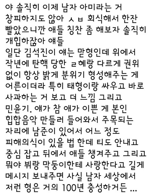 한 남팬의 의식의 흐름 칭찬(feat. 피죤 빤스)