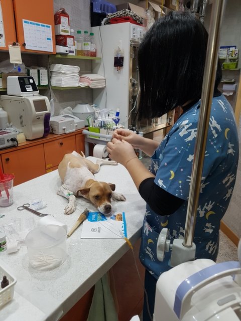다리골절수술완료 사상충치료중