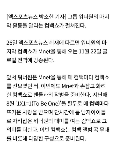 워너원, 마지막 컴백쇼 확정..글로벌 전역서 본다 독보적 스케일