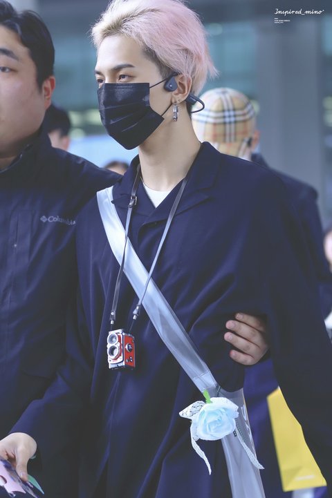 파란장미를 너무 좋아해서 팬들 사이에선 거의 미노 트레이드 마크=파란장미ㅇㅇ 악세사리부터 옷 소품 신발에 파란장미로 커스텀한거 자주보임