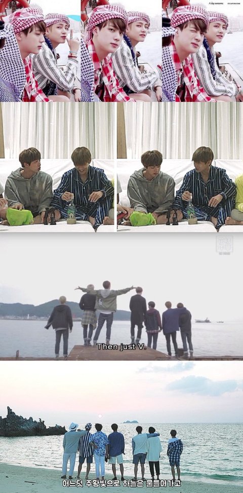 그런 뷔를 보면서 진은 "얜 뭐지?"라고 생각했지만 꿈쩍도 하지 않고 "너 저기 가서 해 봐"