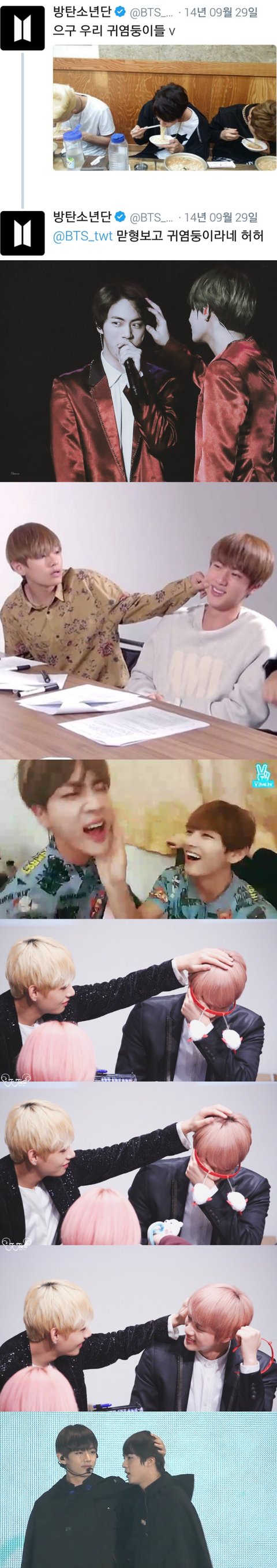 뷔가 진을 보자마자 갑자기 달라붙어서 몸을