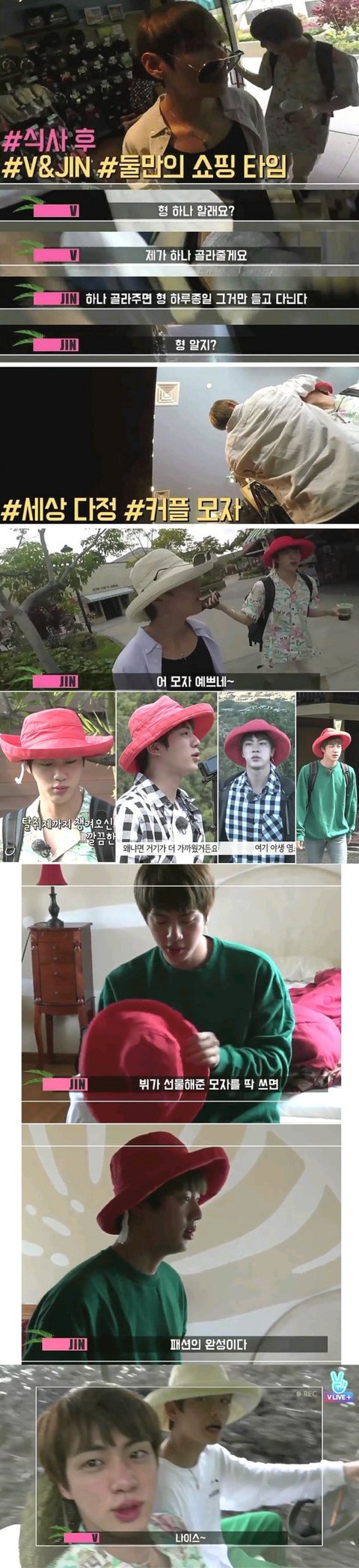 진 : 저와 뷔는 미식가라서 1시간 동안 계속 같이 디저트를 먹어요.