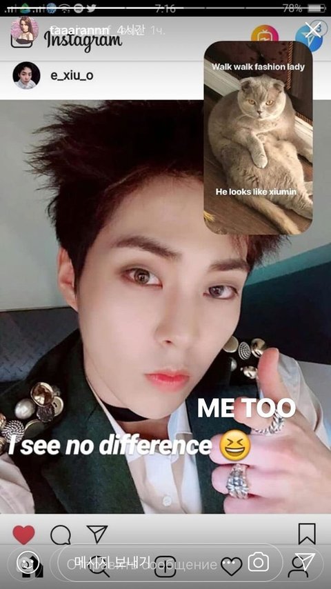 모델겸 뷰티유튜버 인스타에 시우민언급됨