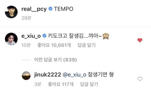 모델겸 뷰티유튜버 인스타에 시우민언급됨