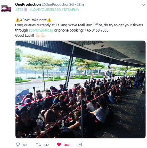 on-offline 티켓팅이 다되어서 벌써 각지점마다 아미들 줄서서 기다리는중