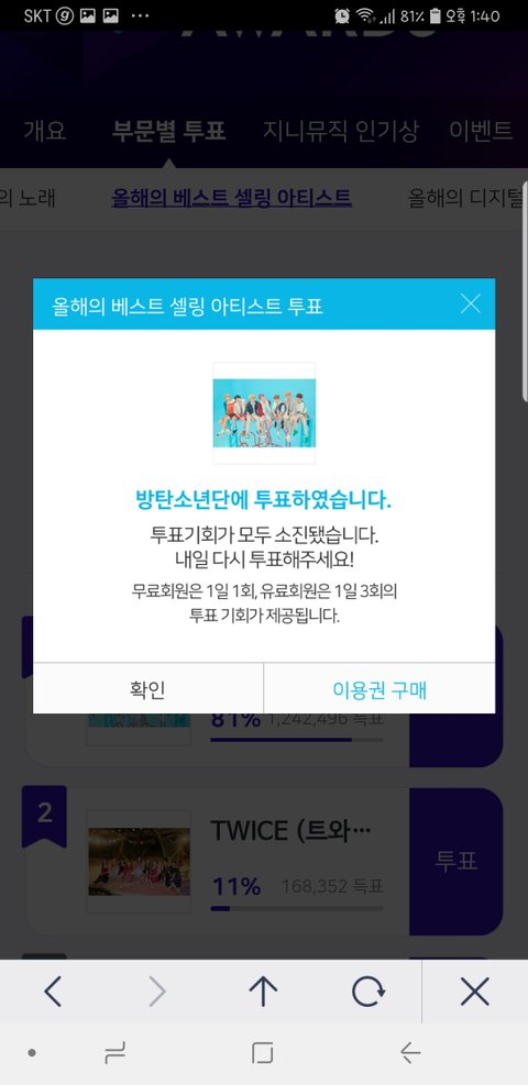 근데 방탄 아직 인기상인가 그거 못탔어?