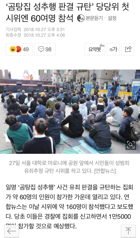 이번에 곰탕집 성추행사건 억울하다고 시위했음