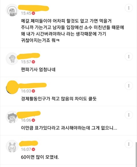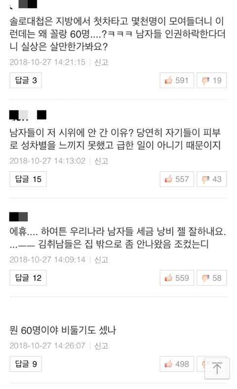 여자들은 태풍이와도 6만명이 모였는데 ㅋㅋㅋ 푸헹켘ㅋㅋㅋㅋ 역시 재내들은 현실에서 차별받는거없고 편하게사니까 시위나갈 중요성도 못느끼는거겠지 ㅋㅋ