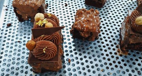 이건 브라우니 위에 크런치초콜릿 만들어서 부은다음에 초코크림으로 위에 장식한거야