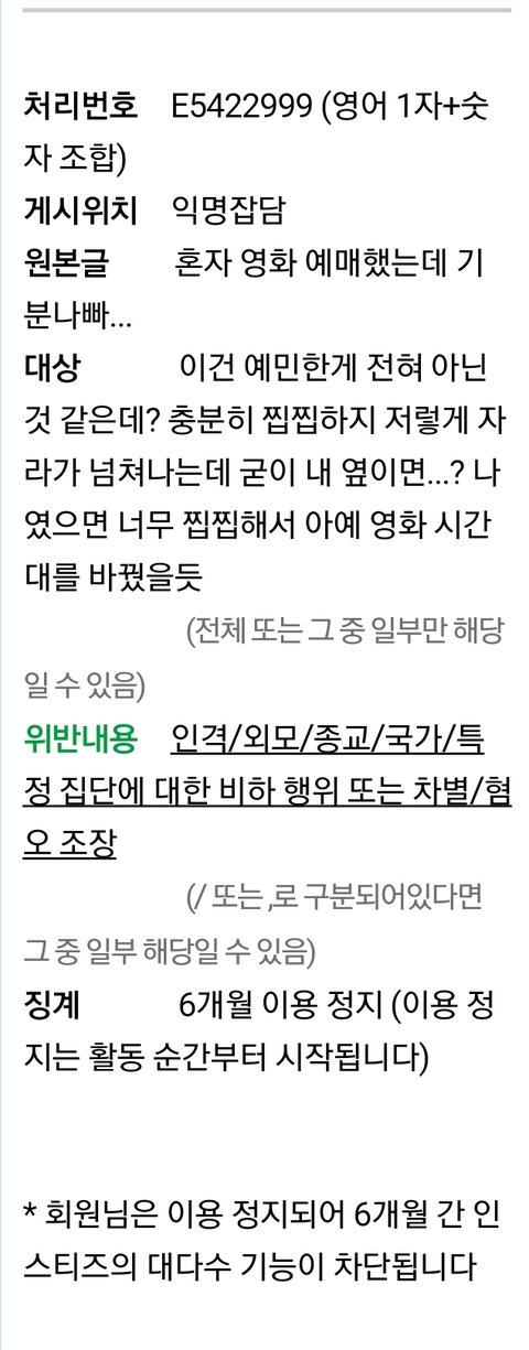 인스티즈 6개월 정지 사유 어이털림ㅋ이게 비하???????