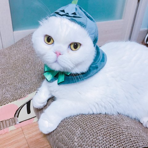 할로윈이라 모자 씌어줬는데도 넘 얌전하게있네용