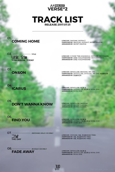 Verse 2 앨범은 2012년 이후 5년만에 나온 JJ Project의 미니앨범으로 R&B / 발라드 등의 곡으로 총 8트랙으로 구성돼 있고 진솔하게 쓰여진 가사가 지치고 방황하는 청춘들에게 위로가 되는 앨범이야