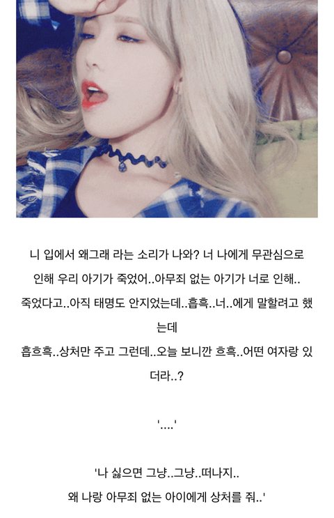 미친거 아녀? ㅋㅋㅋㅋㅋㅋㅋ 야 내가 볼때는 알페스를 팰게아니라 얘네 좀 어떻게 해봐 개소름돋아 유산이 장난인가 서방을 하고안하고를 떠나서 어떻게 저런소재가지고 씀? 난 애들이 저거볼까봐 온몸에 소름돋아