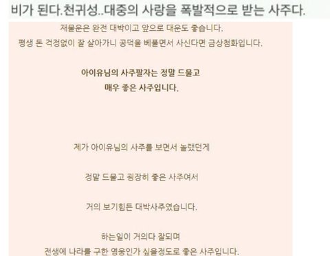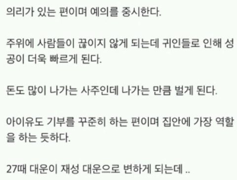 아이유가 저 꿈얘기할때 아이유 사주가 딱 생각났거든!!