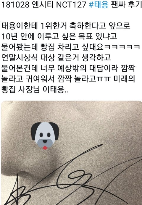 태용이 빵집차리는게 꿈이래..