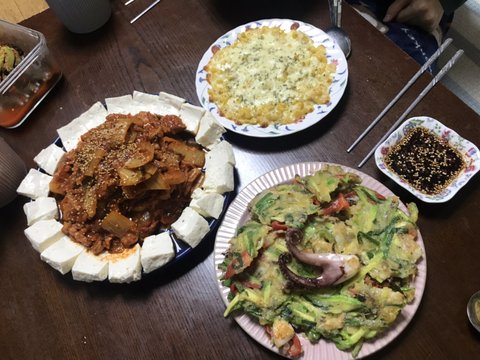 비오는날 두부김치,해물파전,콘치즈