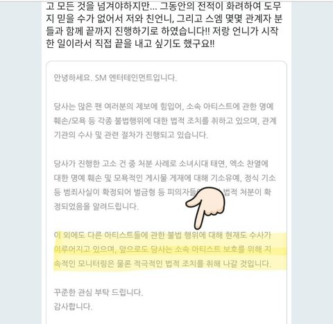 팬들이 진행하던 고소랑 에셈에서 진행하던 고소랑 합쳐서 대대적으로 고소하기로 했다함ㅎㅎㅎㅎ