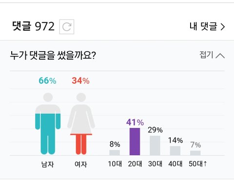 밑 사진은 방탄 찰리푸스 콜라보 관련 기사인데 여기 보면 남자 비율이 월등한 게 보일 거임 너네도 알다싶이 남돌 기사는 평소라면 남자 비율은 여성 비율보다 현저히 낮은 거 알 거임 ㅇㅇ