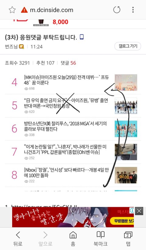 이 사진들은 아이즈원 팬덤이 방탄 및 여러 기사를 이용해 우익 기사를 내리려고 시도한 증거 및 좌표 찍은 거