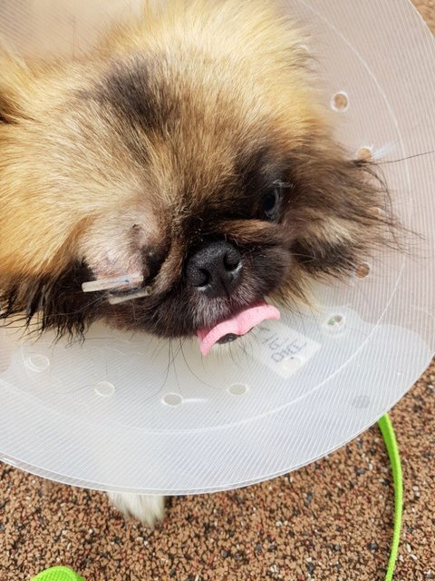 애견호텔에서는 처음 있던 병원에서의 치료비만 지불하고 더이상의치료는 책임을 지지 못하겠다고 합니다. 안과 전문 병원에서는 안구탈구와 함께 시력을 거의 잃은 상태라 지금이라도 수술을 해야한다고해서 사비로 먼저 수술을 진행했습니다.지인분은 조금이라도 붐바가시력을 찾을 수 있을 것이라는 희망을 가지고붐바는 한번 더 큰 수술을 하였고 현재 붐바는 수술 후 상처를 회복하는 중입니다.