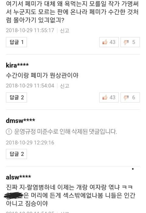 성전환 하며 댓글작성중
