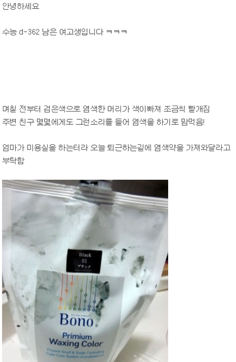 7년전 네이트판에 혼자염색하다가 라는 제목으로 글을 올려 벅찬 관심을 받고도 모잘라