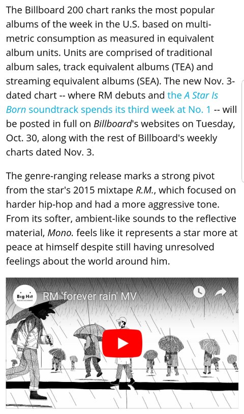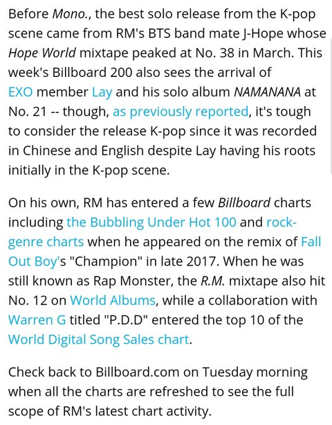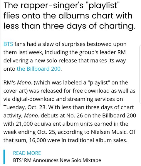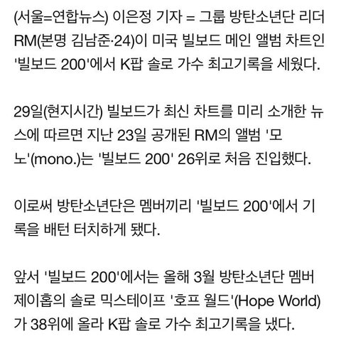 밑글 +기사) RM mono 넬볻 200 26위!!
