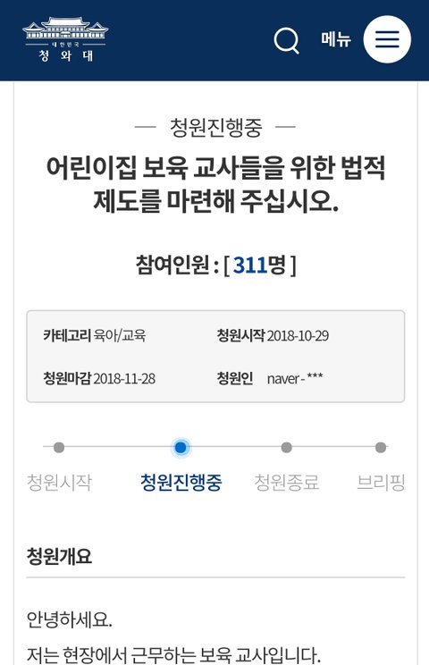 [어린이집 교사들을 위한 법적 제도 마련 청원]