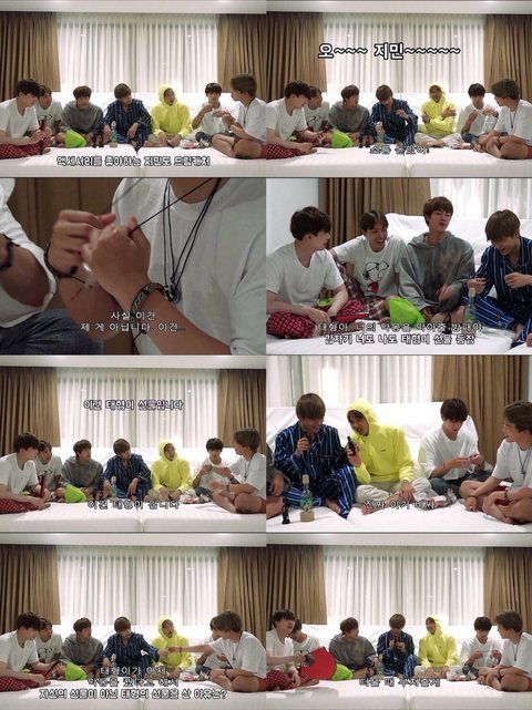 늦게 합류한 태형이가 방 결정할 때도 지민이랑 같은 방 쓰고 싶어서