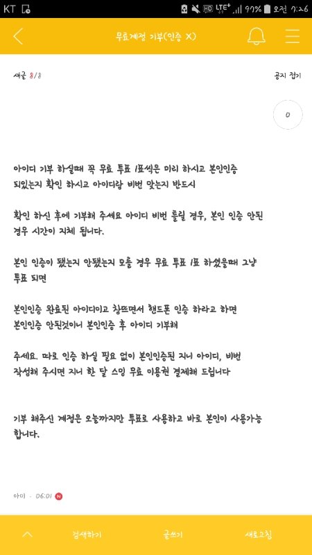 본인인증 완료한뒤에 무료투표권 1개는 투표해서 기부하면된대 인증때매 유료전환 못한 사람한테 홍보 ㄱㄱ