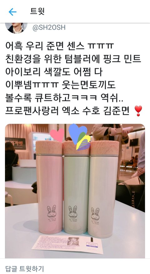 그리고 마지막으로 더 발리는 건 환경을 생각하는 마음으로 에코텀블러라는점!!! 한강 갔을때도 유리잔 들고간다고 했었던 것같은데,,,ㅠㅠ 진짜 멋진 사람,,,ㅠㅠㅠㅠㅠㅠㅠ