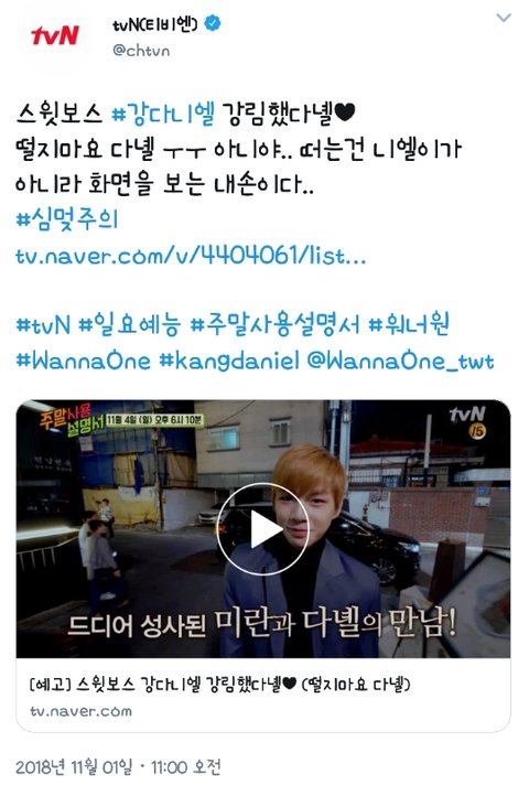 티비엔 공계에 주말사용설명서 강다니엘 예고떴다!