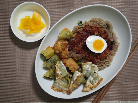둥지냉면이 1개 남았길래 에어프라이어에 이것저것 넣고 돌려서 같이 곁들여 먹었습니다. 인스턴트가 좀 많네요 ㅠ