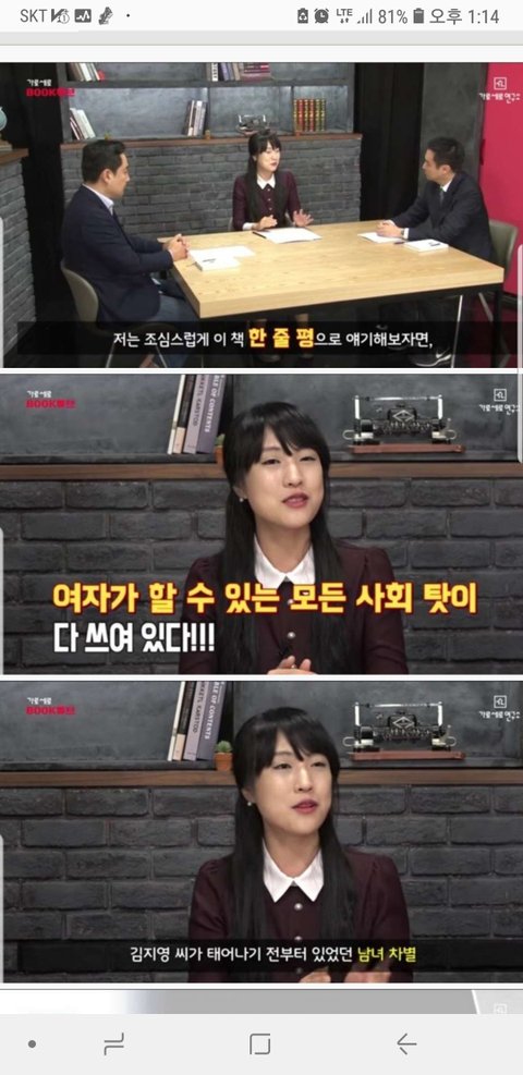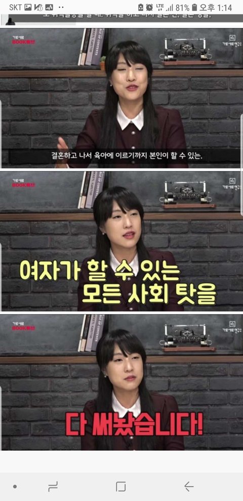 뭐래 그럼 차별 당하는 걸 가지고 남탓한다는 거야 뭐야 그럼 본인 탓이냐? 사회적으로 문제가 있는 부분을 지적하고 있는 걸 거지고 ‘여자가 할 수 있는 모든 사회탓’? 시사풍자를 불평불만으로 치부해 버릴 사람이네 이거;;