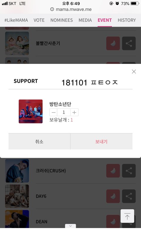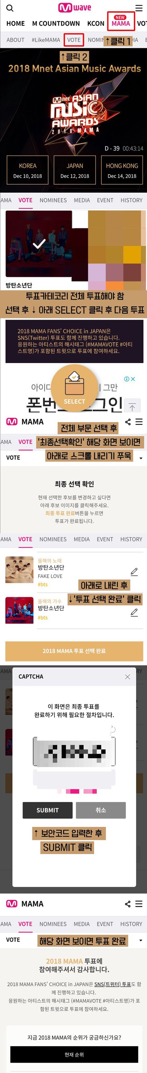 ✔ 모든 부문 셀렉하고 마지막 보안문자 쳐야 투표완료.