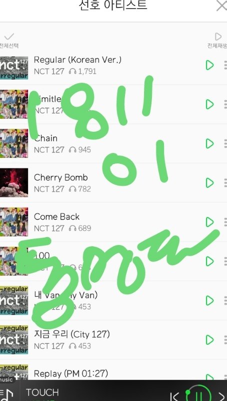 음원발매일부터 스밍한 레귤러 포함 수록곡 누적횟수