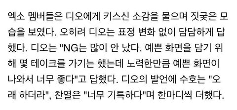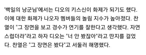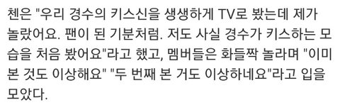 첸 : 경수가 키스하는 모습을 처음봐서 놀랐어요