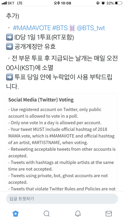 네. 날개는 자정전에 안쓰면 소멸이구요~ 글로벌 인기상 절대 잊지말구요~ 혹시 짹 계정 비공으로 돌려져 있는 이삐들 공개로 돌려주심 감사하겠오