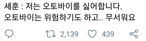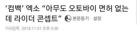 짤은 오도바이 컨셉으로 컴백하는데 아무도 오도바이 면허가 없는 엑소와 오도바이가 싫은 세훈